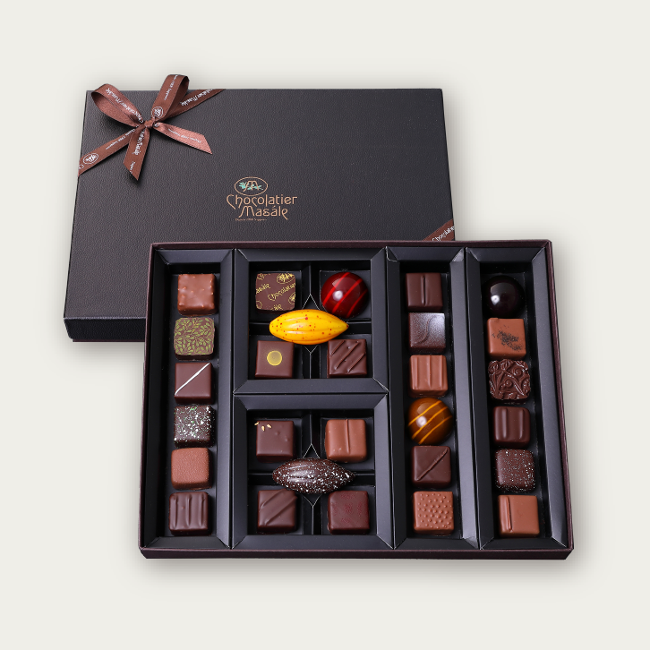 徹底した温度管理のもと、厳選したクーベルチュールと相性のよい素材を吟味し一粒一粒手づくりした、マサール自慢のショコラを人気順に詰め合わせたセットです。