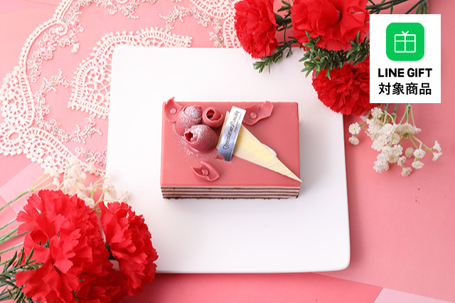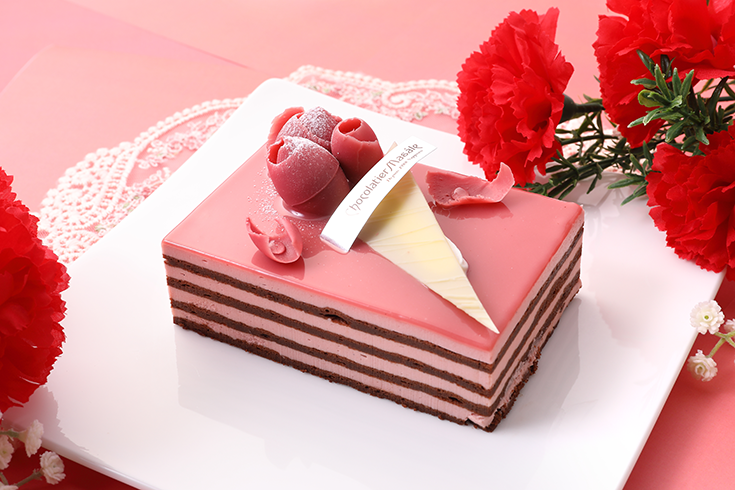 イチゴの風味を楽しめるムースを層にしたケーキ。