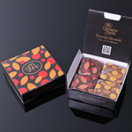 マサール特製ブラウニーを二度焼きし、”カリッサクッ”とした食感に仕上げ、ブラックチョコレートでキュートなキューブ型にコーティング。